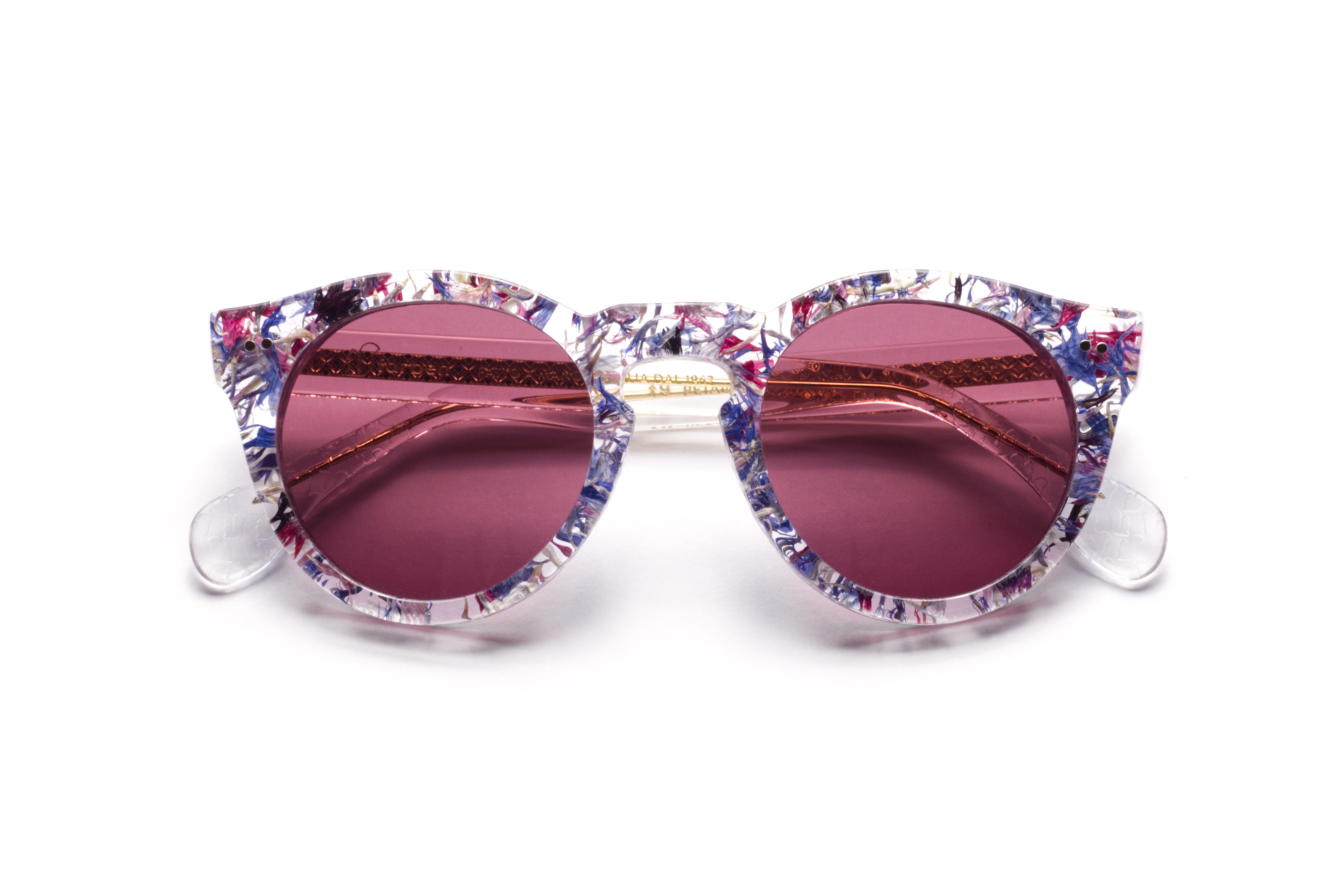 Per restituire la suggestione di una passeggiata tra prati e boschi, abbiamo racchiuso nelle montature di questa serie diversi tipi di sostanze vegetali tra quelle che meglio raccontano l’ambiente montano: petali di fiordaliso, spighe, muschi, licheni e legni, che vengono raccolti e inseriti in più strati di cellulosa Mazzucchelli 6 millimetri, attraverso un delicato e complesso procedimento manuale, unico nel suo genere. Questa particolare lavorazione ci permette di realizzare composizioni sempre diverse su ogni singolo esemplare, dando vita a occhiali “one of a kind”.